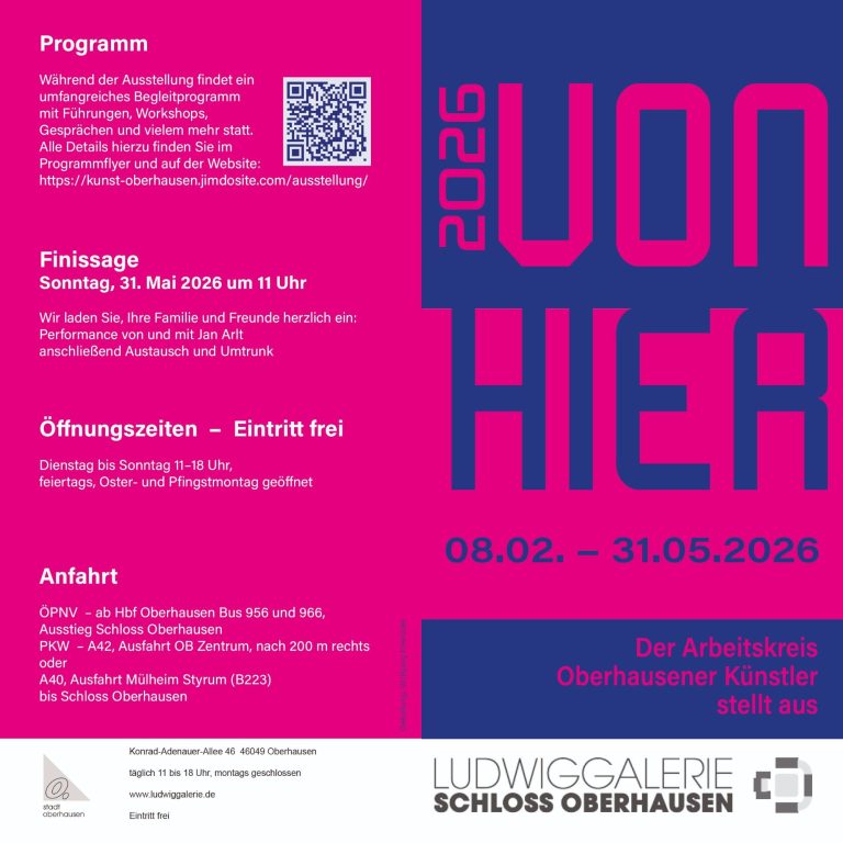 Der Arbeitskreis Oberhauser Künstler stellt in der Ludwigsgalerie Schloss Oberhausen in der Ausstellung VON HIER einjuryierte Arbeiten vor.